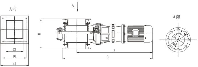 該閥由閥體、傳動軸、葉片和減速器等組成,減速電機帶動傳動軸和葉輪旋轉(zhuǎn),完成給卸料。