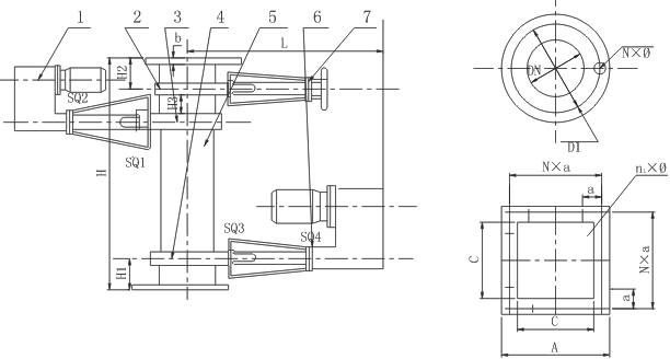 1.電液推桿 2.上灰渣(漿)閥 3.中灰渣(漿)閥 4.下灰渣(漿) 5.筒體 6.位置開關(guān) 7.支架