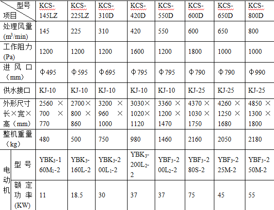 礦用濕式除塵風(fēng)機主要技術(shù)參數(shù)表: