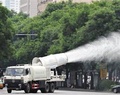 江蘇省揚(yáng)州市投資購(gòu)置的多功能抑塵車(chē),近日在工地投入作業(yè)。據(jù)測(cè)試,抑塵車(chē)噴出的“霧炮”可以將空氣中的PM10、PM2.5濃度降低15%左右,能起到很好的降塵效果。