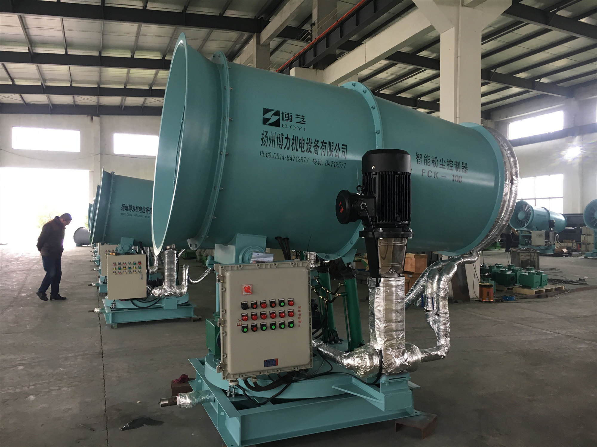儲煤場寬度約80米,長度約452米,總投影面積約36160㎡,共設(shè)“博藝”牌防寒防爆型智能粉塵控制器(BL/FCK-HB50,BL/FCK-HB60,BL/FCK-HB100)周運(yùn)轉(zhuǎn)儲煤能力達(dá)到10萬噸,滿足3—5天堆儲能力。場地中部有橫跨高壓線(不改線),設(shè)計分為南、北2個儲煤棚進(jìn)行封閉,南棚高33.0米,寬80.7米,長267.3米,建筑投影面積約為21571㎡,煤棚內(nèi)設(shè)BL/FCK-HB50型2臺,BL/FCK-HB60型防寒防寒型智能粉塵控制器8臺噴霧抑塵降塵。北棚高33.0米,寬78.6米,長150.0米,建筑投影面積約為11790㎡。設(shè)BL/FCK-HB100型防寒防寒型智能粉塵控制器2臺噴霧抑塵降塵。