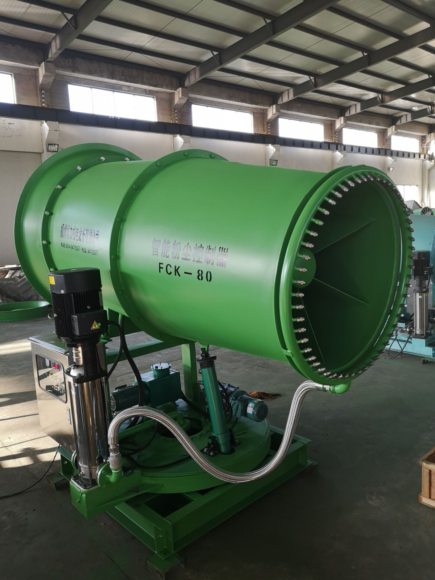 汽車(chē)卸煤時(shí)粉塵飛揚(yáng)較為嚴(yán)重,運(yùn)行人員的工作環(huán)境惡劣,也影響電廠的安全文明生產(chǎn),因此汽車(chē)卸煤采用BL/FCK-80型遠(yuǎn)程射霧器抑塵。同樣,封閉煤場(chǎng)的堆料帶式輸送機(jī)的頭部落料點(diǎn)和尾部受料點(diǎn)設(shè)BL/FCK-80型遠(yuǎn)程射霧器抑塵,盡量減小煤塵飛揚(yáng)。